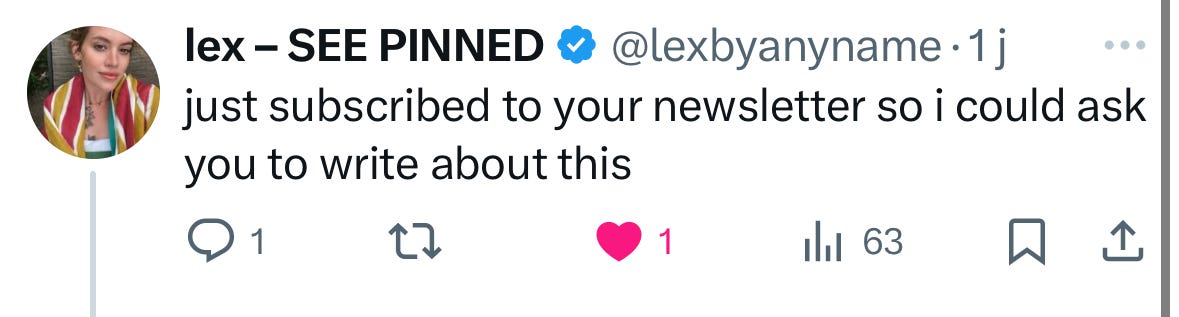 Altogether, this signals the death of hunger, desire, and reward. Caroline Polachek wouldn’t scratch the same itch if she sang, “Desire, I want to turn away from you." Without hunger, there’s no brat summer. W. David Marx wrote about how our thirst for status shapes our identity and the cultural zeitgeist, but what happens when we lose our appetite? The capitalist machine may break down.